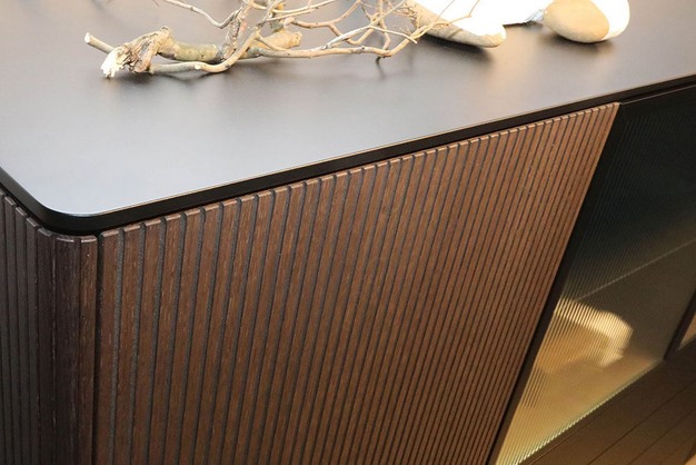 Ron is 100% Belgium made by Saunaco and designed by Studio Segers. The collection is modular, so can be personalised in numerous ways for modern interiors in both small and large spaces. The design is characterised by a consistent interplay of lines. This extends through from the fronts, across the rounded corners, and into the structured glass. Only the practised eye could discern that the fronts are not veneered. The ribbed profiles are milled in MDF and finished with a powder coating. Ron represents Saunaco’s DNA.