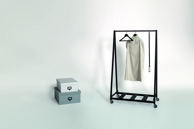 The Oliver stander was on show at Salone del Mobile in a new black ebony finish. Oliver is an elegant and dynamic solution. Initially designed for the hotel industry as a complement to the wardrobe in suites and conference rooms, it was then thought for home use. In this latest version, the model has become the perfect ally for hanging garments and accessories for guests and/or inside a walk-in wardrobe, in the bedroom, or at the entrance to the home.
