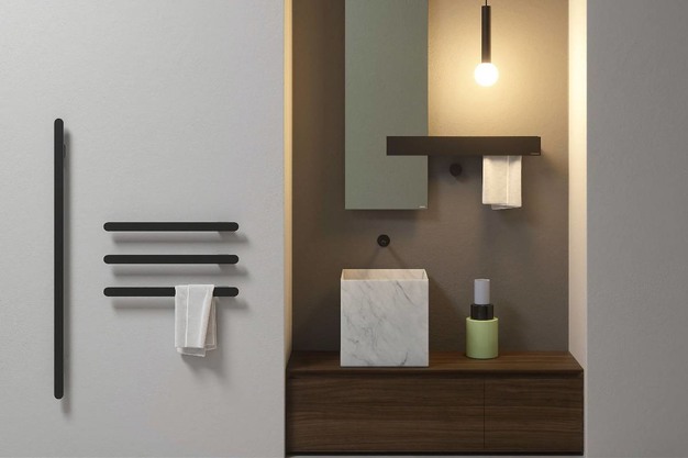 Thus, different designs and configurations are born that interpret the specific needs of the washbasin area of each project, also thanks to the possibility of joining several blocks through a connecting element that ensures the continuity of the configuration by placing them side by side without interruption.
