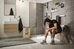 A light terrazzo floor, colour-coordinated with the exposed concrete of the curved, two-storey building, provides a neutral backdrop for curated product displays designed with natural clay plasters and paints. In these niches, visitors can experience the tactile qualities of Laufen's bathroom products, from washbasins and toilets to matching furniture, faucets, bathtubs, shower trays, and accessories. Each bathroom collection is presented with signature colours.