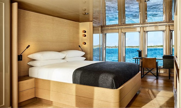 Accommodating eight guests, this luxury explorer yacht was retrofitted and reimagined with only four cabins for an enhanced service experience and a minimum guest-to-crew ratio of one-to-one. RH Three also offers a curated culinary experience highlighting premium ingredients, an onboard gym and extended swim platform with panoramic views, and a full fleet of bespoke tenders, kayaks and paddleboards.