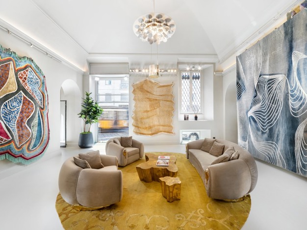 'We liked the idea of creating an itinerary through the showroom, welcoming the customer to a space that resembles an art gallery, where tradition and modernity come together. The areas are large and designed to enhance the rugs, which are hung like great works of art along the white walls, illuminated by spotlights that bring out the vibrant, natural colours of the tapestries and highlight the craftsmanship with which they are made. We wanted a space that was really... rug-centric!'