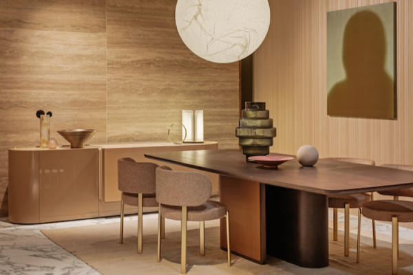 Behind the table, there is the Echo sideboard, a witness of contemporary sinuosity and refined elegance.