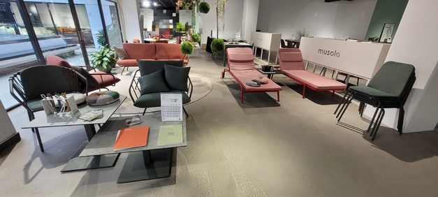 The new showroom at Brussels' Heysel offers a comprehensive presentation of both Mobliberica's indoor furniture and Musola's outdoor collection. Visitors there can take a closer look at the designs and be inspired by the versatility of the ceramic tops. Those wishing to learn about the collection can contact Gaëlle or Gunter.
