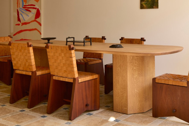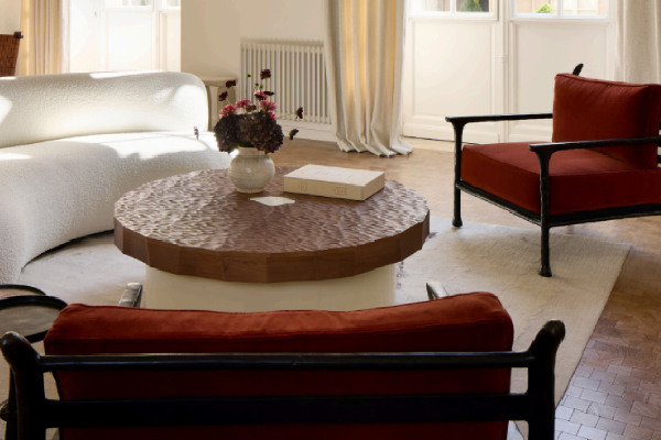 Amélie du Chalard collaborated with Franco-American architect Tess Walraven, who completely renovated the duplex. The creative trio Pierre Augustin Rose, with whom the gallery owner has worked for several years, brings their full creative potential to life through the furniture pieces they installed in the space.