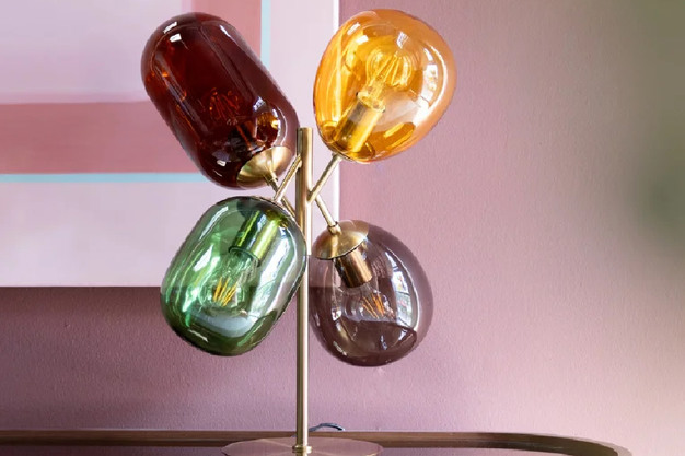 'The "Balloon-Dance" lamp is heavily inspired by the retro style of the 60s and 70s, but with a modern twist. Organic shapes and smooth, flowing lines were key to the design. The glass bodies are meant to evoke floating balloons, gently dancing in the air. The colours—burgundy, green, and amber—reflect the warm, earthy palette of past decades, which is currently back in trend.'