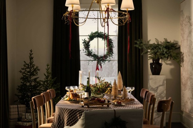 A garland is the perfect way to add a lot of texture and colour to your holiday palette. These can be shaped in a lot of different forms to bring instant life to every vignette. Owner of the Studio, Shea McGee suggests draping them off to one side on a mantel, styling them on shelving, and tying them with ribbon on banisters, as well as placing them unexpectedly throughout the home for added interest.