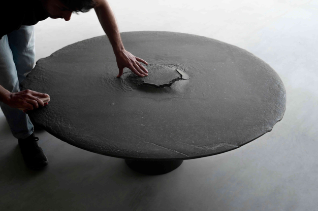 'During the experimentation phase, a fascinating phenomenon emerged: when exposed to extreme temperatures, lava stone tends to revert to lava, losing its geometry to take on new, fluid, and unpredictable forms,' the designers explain. 'This reaction inspired the design of 1669, a circular top fused directly onto a hollow cylinder that serves as a pedestal.'