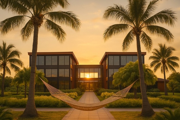 The headquarters of InteriorDaily in Tholen (The Netherlands), created by AI in a summery vibe.