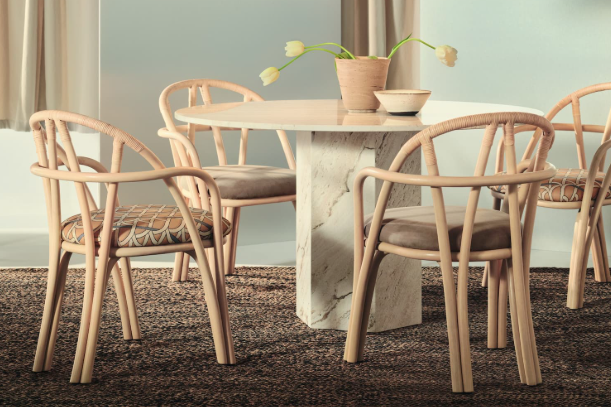 'The inspiration for Bistra comes from the plant world: the structural rattan elements emerge from a single point and branch out like tree limbs or fronds. Everything originates from the base, from which elements extend and transform into supports for the seat, backrest, legs, and armrests. It is a structure that grows from the ground up, like roots that evolve and transform into the final object,' said Michele De Lucchi, Architect and Founder, AMDL Circle.