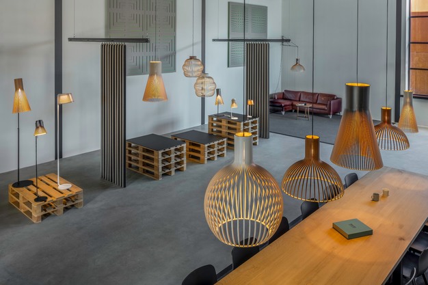 Secto Design's luminaires have been integrated into high-profile projects globally, including the Wood Hotel, Mjøstårnet in Norway; the Gösta Serlachius Museum in Finland; and the Harvard Medical School library in the United States. Retail projects, such as Porsche dealerships, also feature the lamps, where consistency of material, craftsmanship, and spatial impact is critical.
