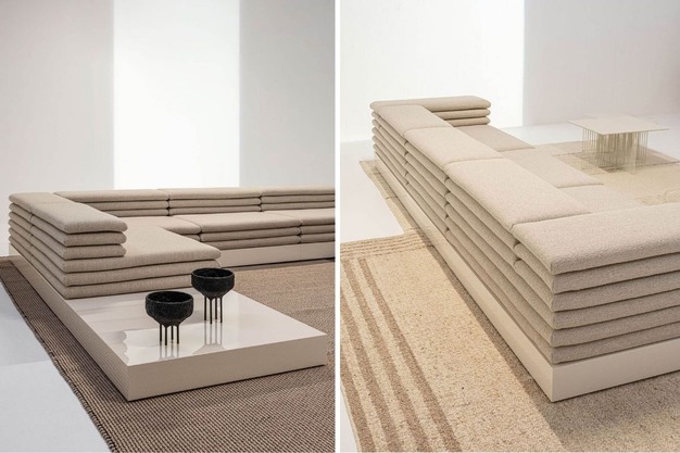 Inspired by the Greek hero Acamante, symbol of passion, movement and courage, the sofa reflects a continuous transformation with a strong visual identity. 'Ossino combines form, function and flexibility in a design that invites versatile use,' says Marc.