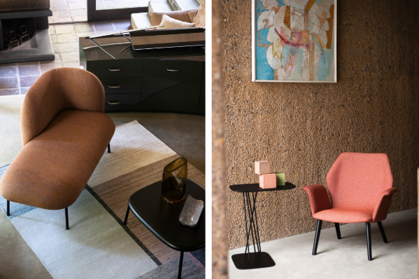 Finally, Aretha, designed by Monica Armani, showcases Bross's commitment to soft, timeless curves. In its lounge version, the backrest folds over itself to conceal the structure behind, doubling its thickness and creating a harmonious, enveloping presence.