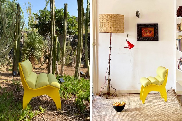 French-Italian designer Jules Régis, born in 1998 in Palermo and raised in Paris, studied architecture before returning to settle in his birthplace. His work engages with sculptural form, materiality, and intuition, drawing references from figures such as Jean Prouvé and Alexander Calder. The influence of Calder is explicit in the naming of his chair "Calder Yellow."