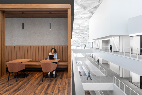 The NVIDIA headquarters exemplifies the convergence of architecture, brand identity, and interior design, with Andreu World's furniture contributing to a cohesive, human-centred environment that aligns with the demands of one of the world's most disruptive technology companies.