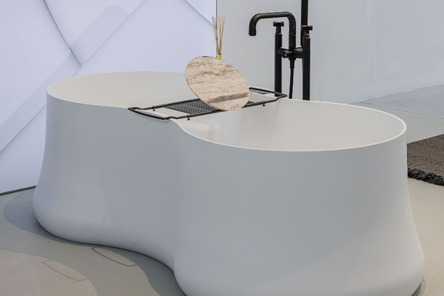 Crafted from Cristalplant®, a bio-based composite, the IN-2000-E is both a functional sculpture and a sanctuary of wellness. Its form draws inspiration from Japanese ritual bathing, fusing ergonomic design, material innovation, and symbolic purity. More than a product, the bathtub becomes a spatial catalyst, transforming water and silence into immersive experience.