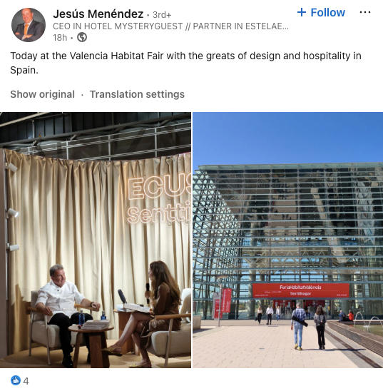 Jesús Menéndez López, Director of Estelea Hotels, is moderating the Hotel & Contract Professional Conference at Feria Hábitat València 2025. This event features industry leaders discussing sustainable design and modular solutions for the hospitality sector. Notable speakers include José Luque (Grupo Fuerte Hoteles), Hilario Salvador (Indeco Global), and Raquel Sanjuán (Raquel Sanjuán Interior Design).