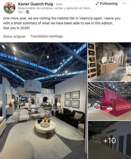 Jose Miguel Casany posted a heartfelt message reflecting on the furniture industry during Feria Hábitat València. In his post, he saluted all the professionals "who enjoy the furniture sector," emphasising the passion, resilience, and creativity that bond the community, whether designer, maker, distributor, or retailer. His words serve as a reminder that fairs like Hábitat are more than business platforms, they're celebrations of a shared vocation.