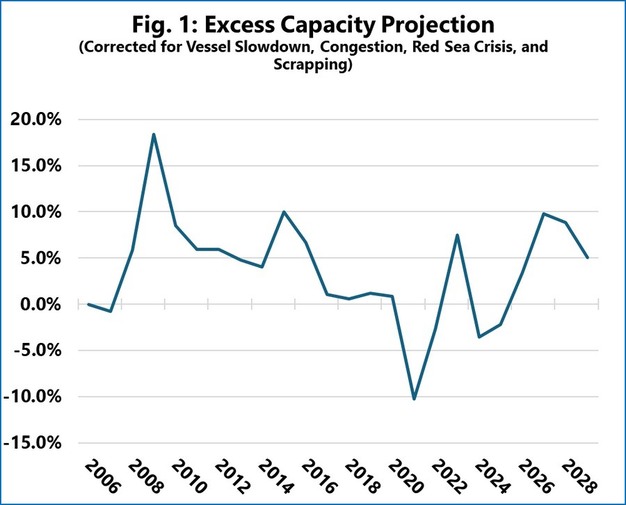 A recent analysis of the global container shipping industry suggests that the market is structurally moving toward a new phase of cyclical overcapacity, expected to peak in 2027 at levels last seen during the 2016 container shipping price wars.