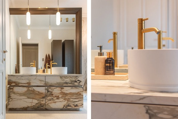 -Using luxurious materials such as marble, DADOquartz and bronze or matt golden accents.