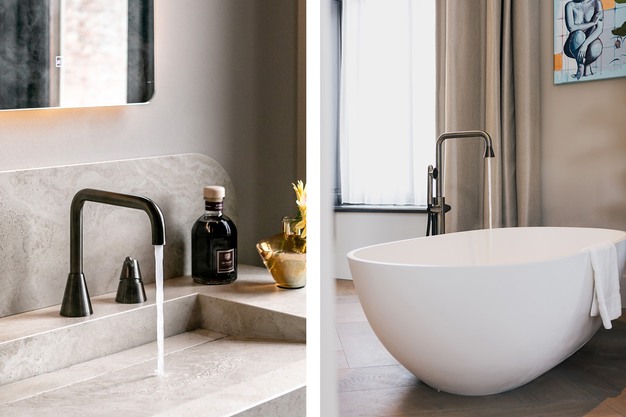 Whether you go for bold statement faucets or minimalist elegance: with JEE-O, you transform your bathroom into a personal hotel experience. Be inspired by projects such as Hotel de Abdij in Dokkum or the Golden Suite at Hotel Papendal. Or explore our bathroom tours, like Spacious but intimate or Bold Design, and discover how to recreate the same luxurious atmosphere at home.