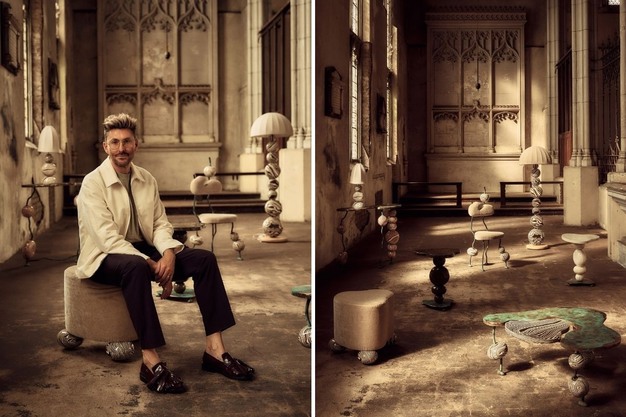 London-based designer Henry Holland has presented his debut collection of furniture, which features handmade ceramic spheres, amorphous mohair seats and patinated bronze. The collection marks his first foray into furniture design since switching from fashion to ceramics in 2020.