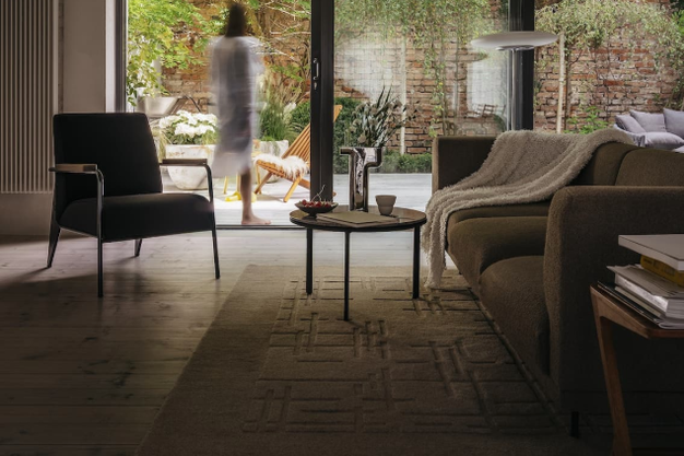 Designer Jacek Kolasiński, founder of Loft Kolasiński, showcases his Symmetry Collection in his own home. The collection's rugs integrate sculptural sensibility with comfort, anchoring open, light-filled spaces where clean architectural lines meet the warmth of natural materials.