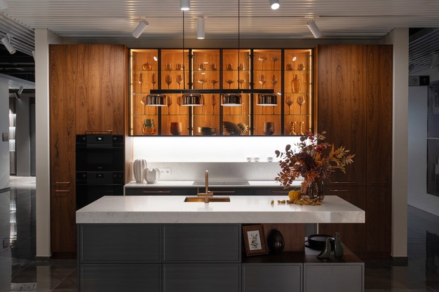 The coming year celebrates contrast and reflection. Metallic finishes, brushed or glossy, are used to amplify light and spatial depth, while glass fronts add transparency and elegance. The mix of metal and glass creates a refined minimalism that feels sophisticated yet weightless, marking a shift away from traditional wood pairings toward reflective, modern compositions.