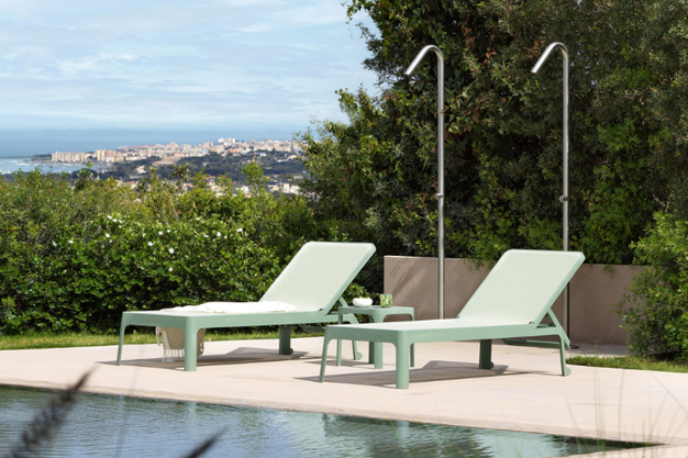 Crafted from fibreglass-reinforced polypropylene with UV additives, the frame is durable, lightweight, and recyclable, while the breathable synthetic fabric cover is replaceable for long-lasting performance. Available in a range of sophisticated colors including Menta, Corda, Tortora, Tabacco, and Bianco, Plano is designed to complement both residential and contract outdoor spaces.