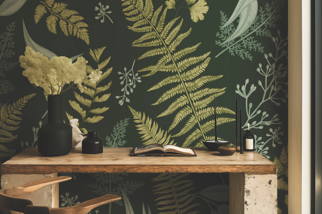 The Herbal wallpaper by Ana Basoc invites nature indoors with its soft, romantic tones and stylised ferns, leaves, and berries. With its free-flowing composition and ton-sur-ton palette, the design evokes the spontaneity of vegetation, transforming walls into serene backdrops for homes, hotels, or retail interiors.