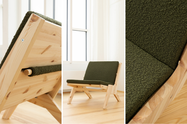 Sway, designed by Herman Studio, is a flexible lounge chair with a clean, Danish design language - where simplicity and strong, harmonious proportions come together in a single expression. The frame is made of solid pine with characteristic sloping legs that give the chair both lightness and stability.