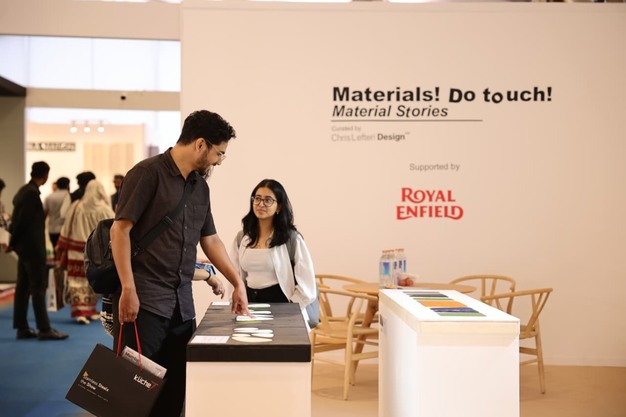 Design installations provided striking visual narratives throughout the venue. Venezuelan artist Juan Gerstl set the tone with Journey Through India, a geometric UV-printed aluminium entrance tunnel, while Lucas Muñoz Muñoz reimagined furniture reuse in his Ex-Hotel concept for THE Park Hotels, transforming cast-off hotel fixtures into an aesthetic statement on sustainability. Chris Lefteri's Materials! Do Touch! installation further emphasised ethical alternatives, showcasing innovative materials such as mycelium-based leather replacements.