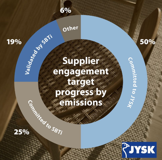 Scandinavian home furnishing retailer JYSK has reached a significant milestone in its sustainability strategy, with 94% of its suppliers, measured by emissions, committing to set Science Based Targets initiative (SBTi)-approved reduction goals by FY28.