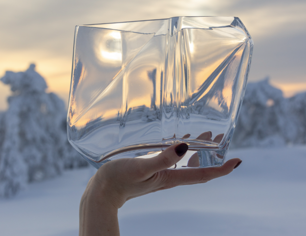 Lohkare glass, mouth blown design vase by designer, Lasse Kovanen.