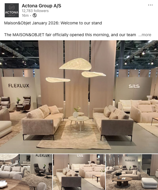 Actona invites visitors to explore their stand and experience the world of Sits and Flexlux, where Scandinavian design meets craftsmanship, comfort and quality. Join them at Hall 5A, Stands A100‑B99, to discover inspiring furniture solutions and connect with their team.
