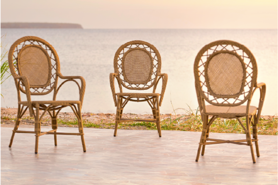 The Romantica Exterior Dining Chair expands the brand's indoor rattan collection into outdoor settings. Retaining the charm of the original design, the new model is manufactured with highly weather-resistant materials, making it functional across all seasons.