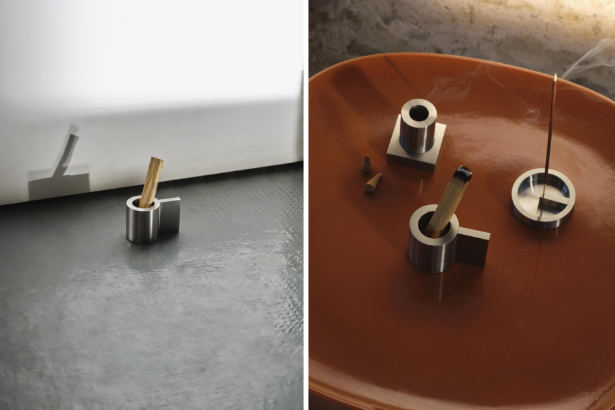 Bonanni's philosophy underpins the collection: objects carry emotional resonance through their form, shaping the atmosphere around them. "The heaviness of the material contrasts with the fragility of incense," he explains, "creating a playful tension that engages the senses."