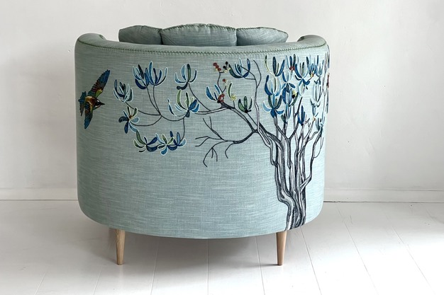 Upholstery and hand embroidery lie at the core of Casamento's practice, chosen less by logic than by instinct. Starry-Eve describes an unexplainable affinity for textiles, particularly those that bear the marks of the maker's hand. 'The energy you put into something is the energy it radiates,' she says, pointing to the quiet intensity of hand-embroidered pieces. Working predominantly with heavy natural fibres such as wool and flax, the studio embraces the way material weight influences stitch formation, resulting in organic, expressive embroidery that feels intentionally imperfect and alive.