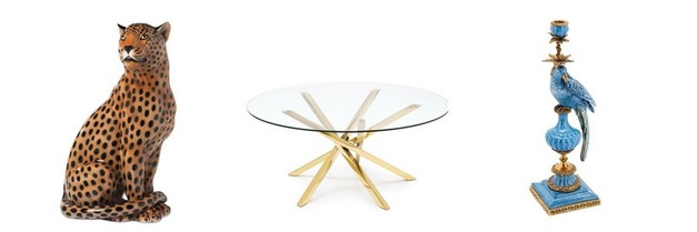 Left: Leopard, centre: Coffee Table, right: Parrot Candleholder.