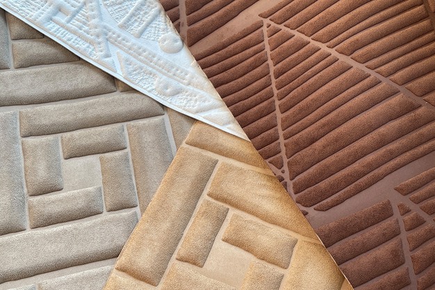 The Memphis collection draws on the grandeur of Egypt's ancient capital. "A luxurious, velvet-like textile with a slightly higher pile brings the relief patterns to life, creating a striking interplay of colours and shapes," Arte notes.