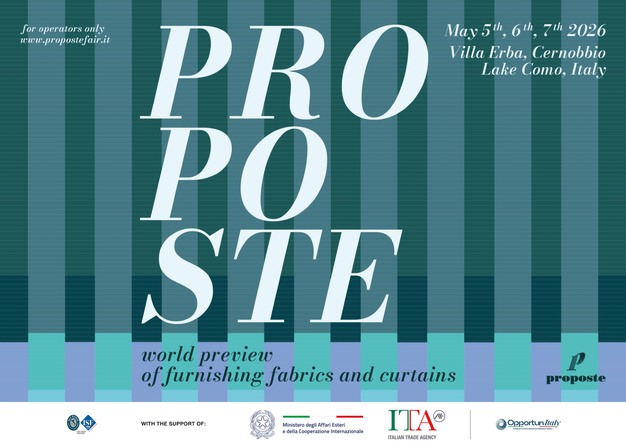 The 33rd edition of Proposte, the international fair dedicated to high-end furnishing fabrics, curtains, trimmings and wallcoverings, will take place from 5 to 7 May 2026 at Villa Erba in Cernobbio, Lake Como. Recognised as one of the most important events for the global home textile industry, the fair will gather 87 exhibitors from 14 countries across four continents, representing the highest level of production in the sector.