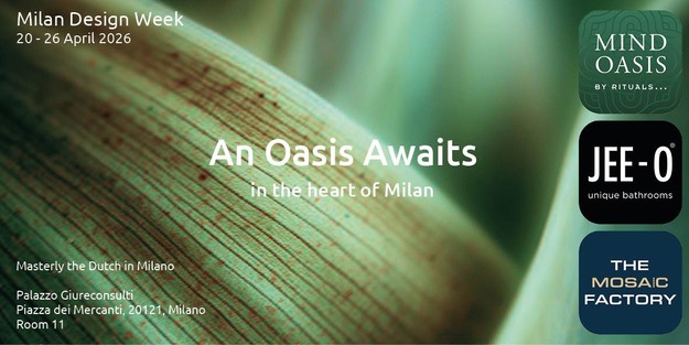 During Masterly Milan 2026, JEE-O joins forces with Rituals and The Mosaic Factory to create a shared oasis where design, ritual and material come together. In this joint concept, JEE-O presents its philosophy: to strengthen body and mind through sophisticated and meaningful design.