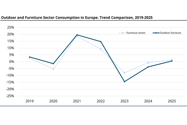 The European outdoor furniture market continues to adapt to shifting consumer behaviour and economic pressures, according to the latest findings from CSIL's The European Market for Outdoor Furniture report (March 2026). Valued at over EUR 3 billion in 2025, the sector remains a significant component of the wider furniture industry, despite a moderation in demand following the surge recorded in 2021 and 2022.