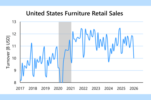 Overall, the data suggests the US furniture market remains in a subdued phase. While housing indicators point to gradual improvement, weak consumer sentiment and declining retail sales underline ongoing fragility.