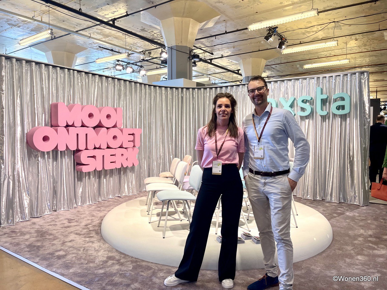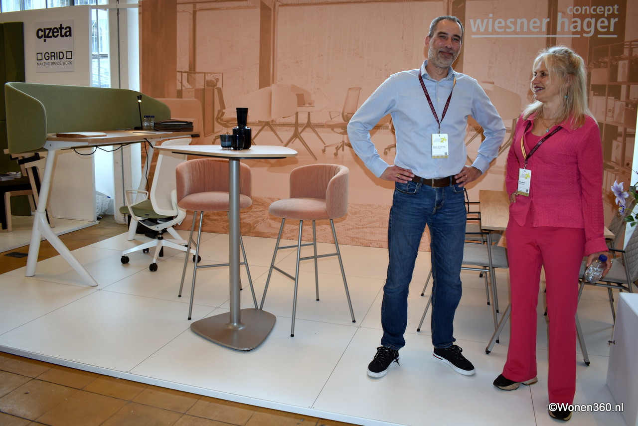 Robert van der Burg and Minka Weeda from Wiesner-Hager, which supplies office and project furniture. The company showcased, among other things, a new table and new chairs that are stackable and easy to connect. The company develops innovative products for events and congresses, training and seminars, offices, and hospitality environments.