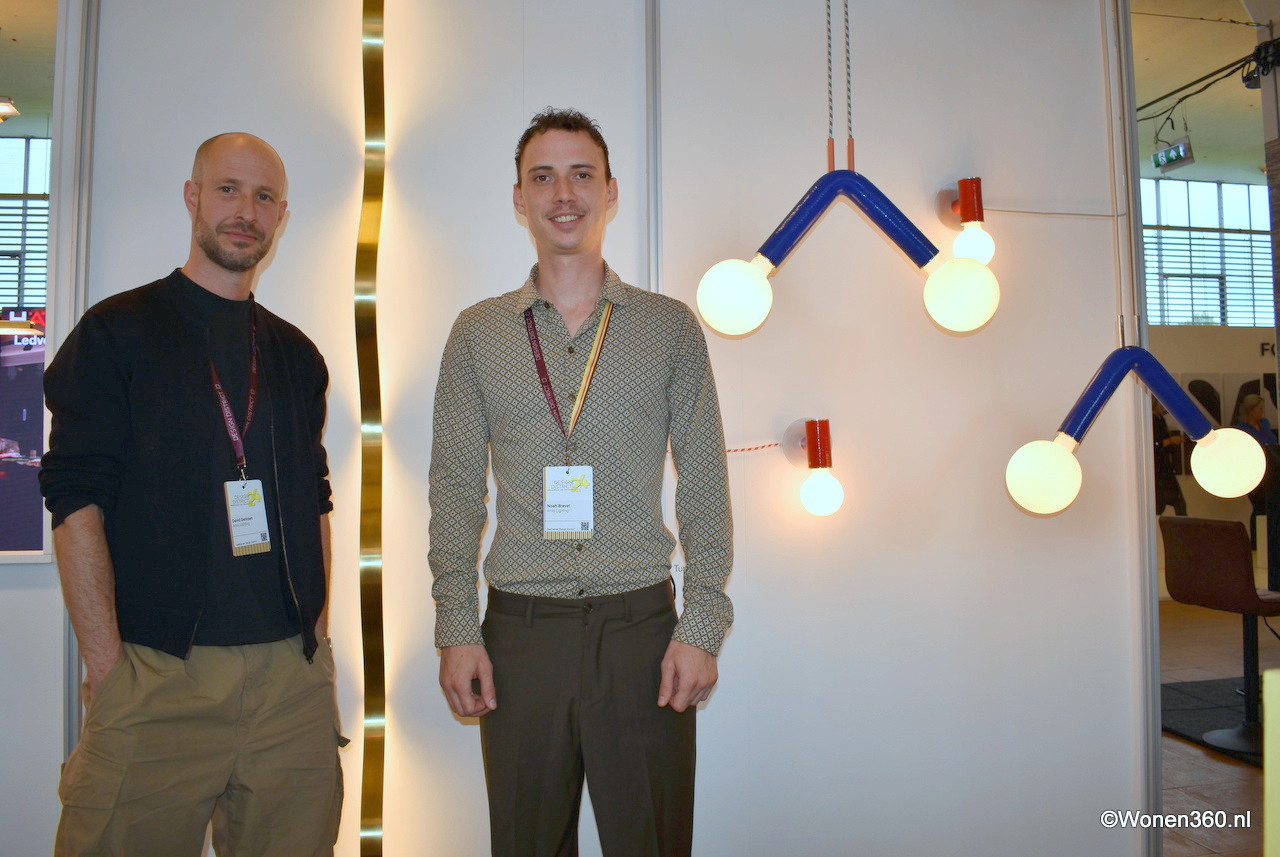 Designer David Derksen (left) with Noah Brevet from Array, which stands for decorative and functional lighting. The properties of materials, construction, mathematical principles, and the possibilities of modern LED lighting techniques form the basis of all designs.