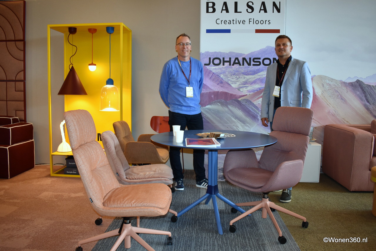 Stijn Sleeuwenhoek (on behalf of Balsan) and Barend Verschuren (Johanson). Balsan, designer and manufacturer of textile floor coverings, showcased the latest Moods2024 collection. Johanson exhibited timeless design furniture with the unmistakable Scandinavian lines.