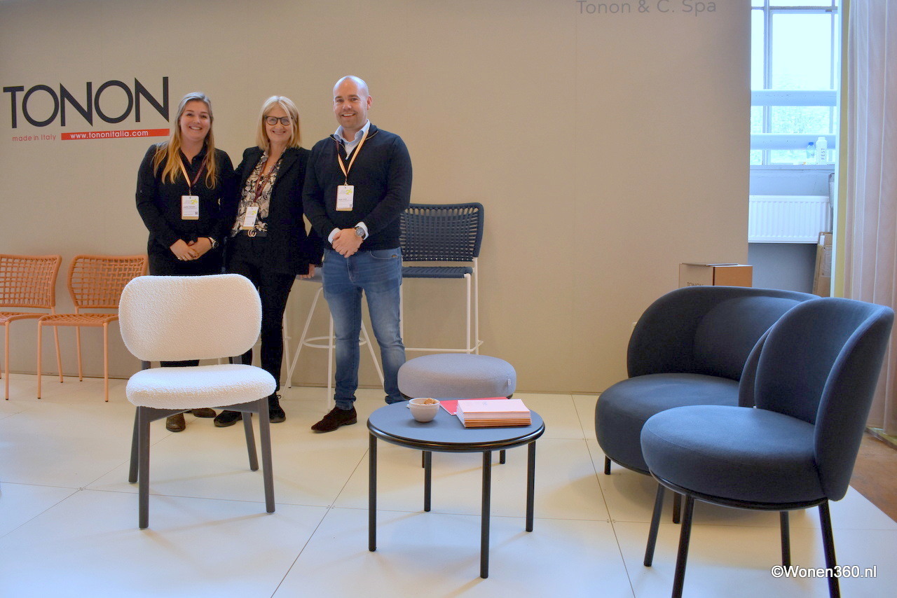At the Spoinq stand, Angela de Geus, Parette Stotijn, and Bob Valckx could be found. Among other things, the extensive Vigo chair family has been expanded.