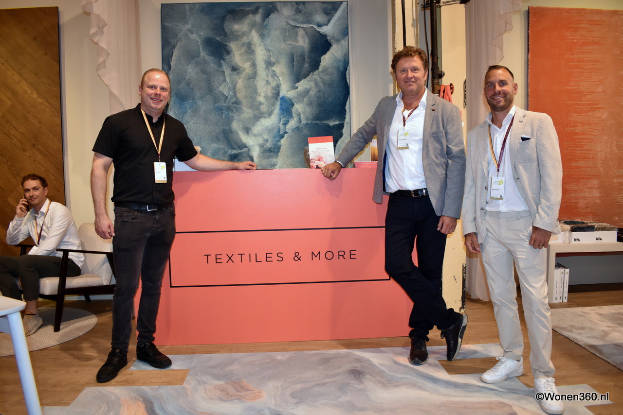 From left to right: Tim Steindl, Bob Looijschelder, and Pascal Versluis of Textiles & More, which develops high-quality, innovative curtain fabrics and printed carpets for interior projects such as hotels, offices, healthcare institutions, and homes, primarily in collaboration with architects and interior designers.