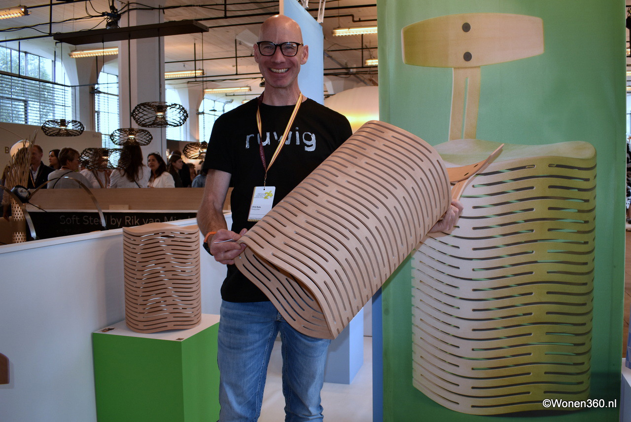 As a designing furniture maker, Chris Ruhe has had a fondness for springy stools for years. "And now I've managed to make one with a backrest. Rough. This design springs and moves with you, which ensures an active and healthier way of sitting."